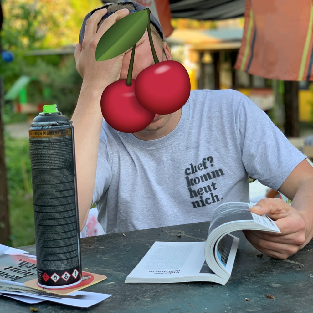 »Fruit of the Loom« Shirt mit gesprühtem CKHN-Schriftzug auf der linken Brust.